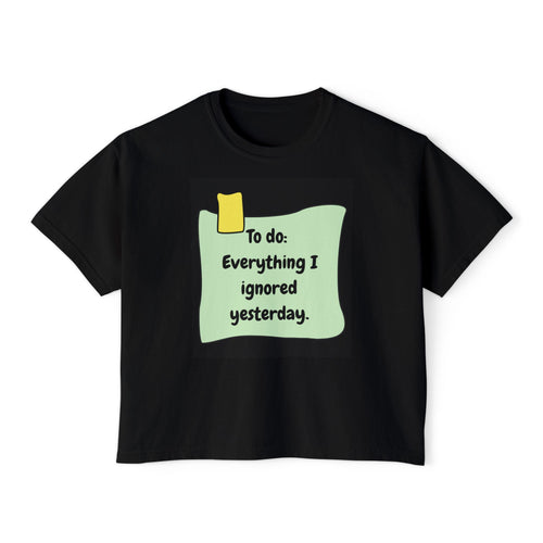 Funny Women's Boxy Tee | To Do List Shirt | Gift for Moms, Students, Self-Care, Casual Wear, Relaxed Fit